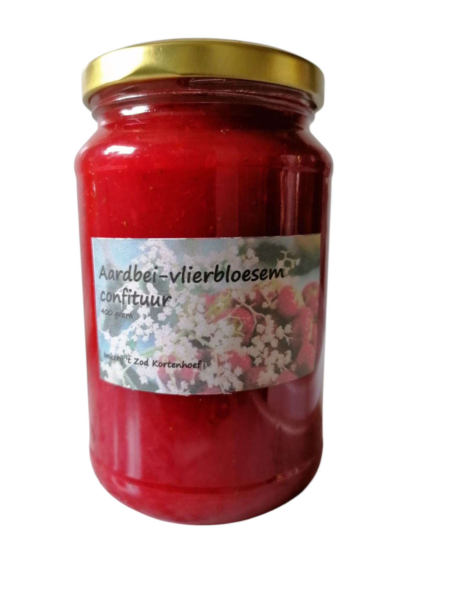 Ingrediënten: aardbeien, geleisuiker speciaal,vlierbloesem, citroen